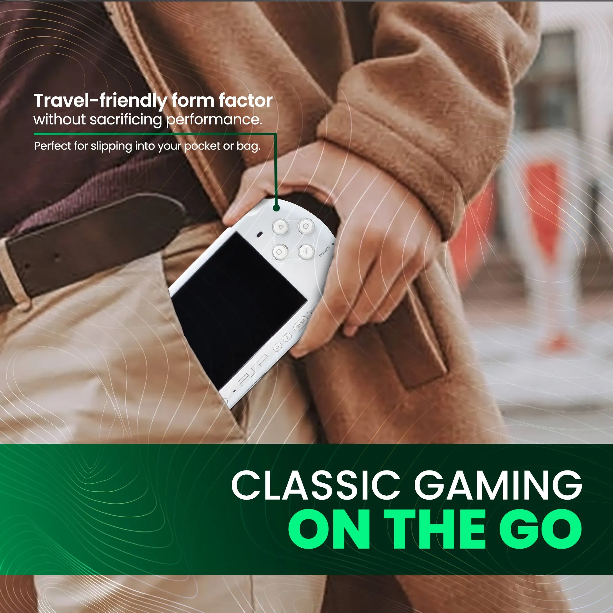 Plays PSP games, UMD movies, and — via digital downloads — many classic titles (like PS1 classics), giving access to a wide library of games